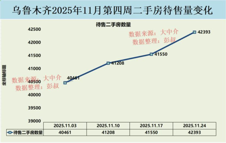 从11月3日到11月24日里面,乌鲁木齐楼市的待售二手房数量是越来越多了,从40461套增加到了42393套,又多了接近2000套的二手房。