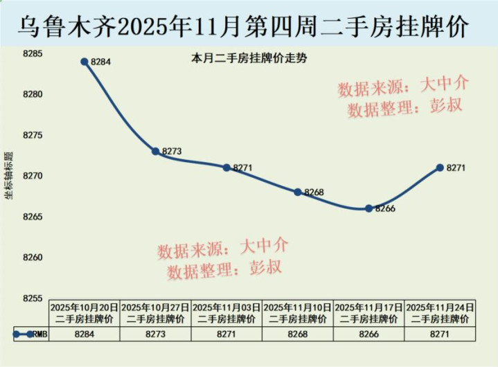 乌鲁木齐楼市的二手房挂牌价现在是在8271元,相对乌鲁木齐的工资水平来说不是很高。